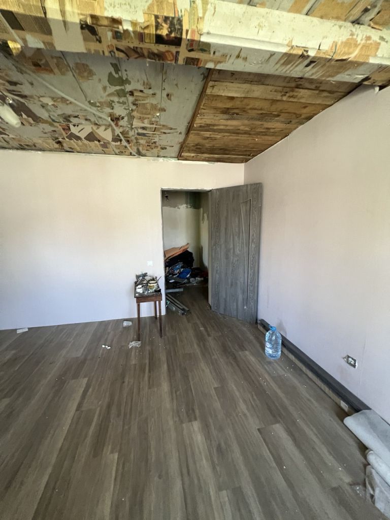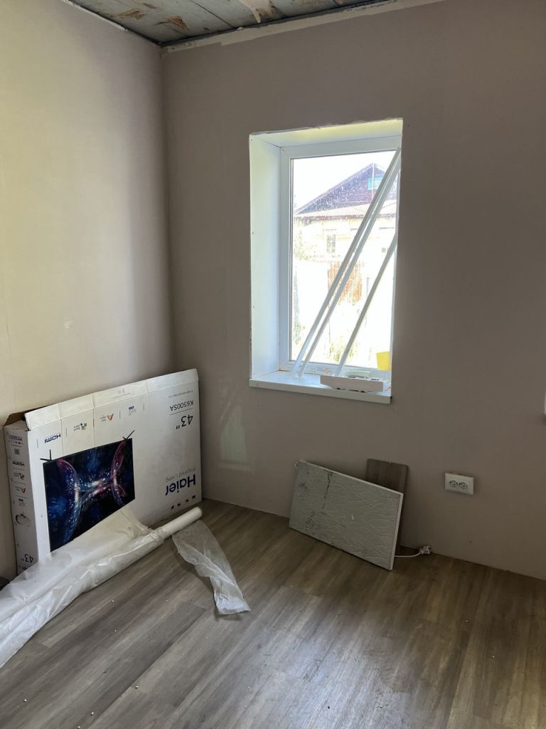 Частично сделан ремонт: полностью заменены и выровняны полы, стены, окна заменены на пластиковые.