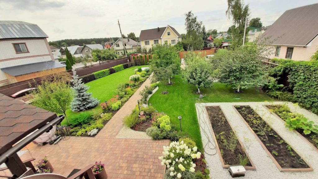 Гармоничное и ухоженное домовладение. Все новое. Дом небольшой, очень уютный и эргономичный, площадь 114м2, расположен на благоустроенном идеальном ровном прямоугольном участке 8 соток c лaндшафтным дизaйном и cиcтемой автомaтическoго поливa. На участке газон, декоративные растения, фруктово-ягодный сад (яблони, груши, черешня, малина, смородина, крыжовник)   и модульный мини огород, выделенная зона отдыха – беседка, садовые качели (мангал, барбекю), бассейна, парковки.  Участок кроме забора окружен зеленой изгородью и насаждениями, что добавляет эстетики безопасному периметру и гармонии пространству.   Доступ на территорию через автоматические ворота или через калитку.
